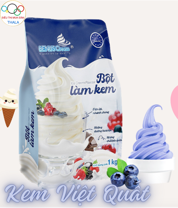 + Thành phần: 1kg Bột Làm Kem Tươi Việt Quất