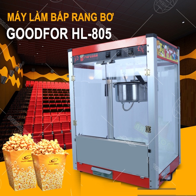 Bắp rang bơ là món ăn vặt khoái khẩu của không ít người, từ người lớn tới trẻ nhỏ. Bạn có thể bắt gặp món ăn này ở khắp mọi nơi: trên những xe đẩy vỉa hè, trong công viên, trung tâm vui chơi, siêu thị hay rạp chiếu phim. Những hạt bắp ngọt thơm, giòn tan có sức hấp dẫn thật lạ kì, nhất là khi tiết trời trở lạnh. Mùi thơm của bắp rang bơ khiến bất cứ ai đi qua nơi bán đều không khỏi ngoái đầu lại xem mùi thơm ấy từ đâu bay ra. Vậy nếu bạn đang có ý định muốn kinh doanh bắp rang bơ thì máy làm bắp rang bơ Goodfor TL-805 là một sản phẩm rất phù hợp cho mục đích kinh doanh mà bạn đang cần.